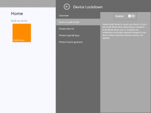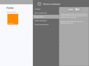 - Within the Lockdown Features you can enable the Unified Write Filter, Keyboard Filter and Gesture Filter – you can also choose to boot into Audit mode.